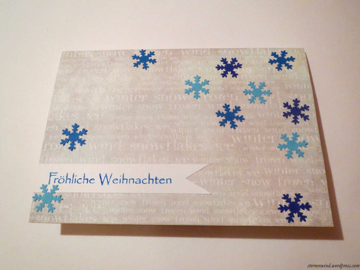 9 Tage sind es noch bis Weihnachten – da wird es langsam Zeit, sich um die Karten zu kümmern, die den Geschenken beiliegen, oder? (Und es sollten noch fehlende Geschenke ergänzt werden… ;) Hach, ich bin hier und da immer noch etwas ratlos…). Nach den letztjährigen Karten (einmal mit Washitape, einmal gezeichnet), habe ich mich dieses Jahr mit meinen ersten Stempeln, einem Schneeflockenstanzer und ganz viel weihnachtlichem Designpapier eingedeckt. Was dabei herausgekommen ist, gefällt mir ziemlich gut – zum einen die recht schlichten Karten mit den Kugeln, zum anderen die Karten in den wunderschönen Blautönen. Hach :)