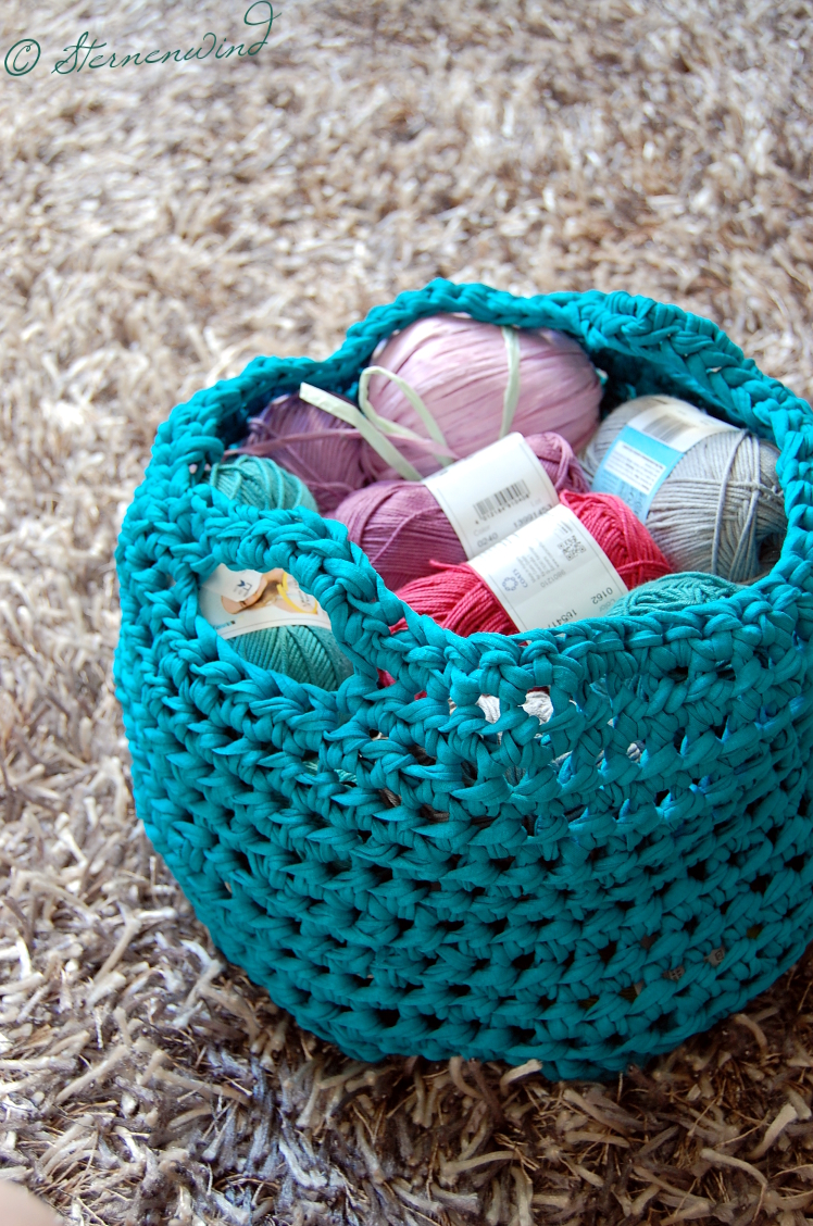 wie letzte Woche angekündigt, habe ich heute eine Anleitung für euch, um einen Aufbewahrungskorb, z. B. für eure Wolle, zu häkeln. Ich bin in der neuen Wohnung noch dabei, meine Kreativecke zu verbessern und während ich am Rumräumen war, fiel mir auf, dass ich die eine Kiste, wo bisher die Wolle drin war (und die eh schon platzt), nun für etwas anderes brauchte. Also Wolle raus, Kiste umgepackt… Und dann lag die Wolle rum…