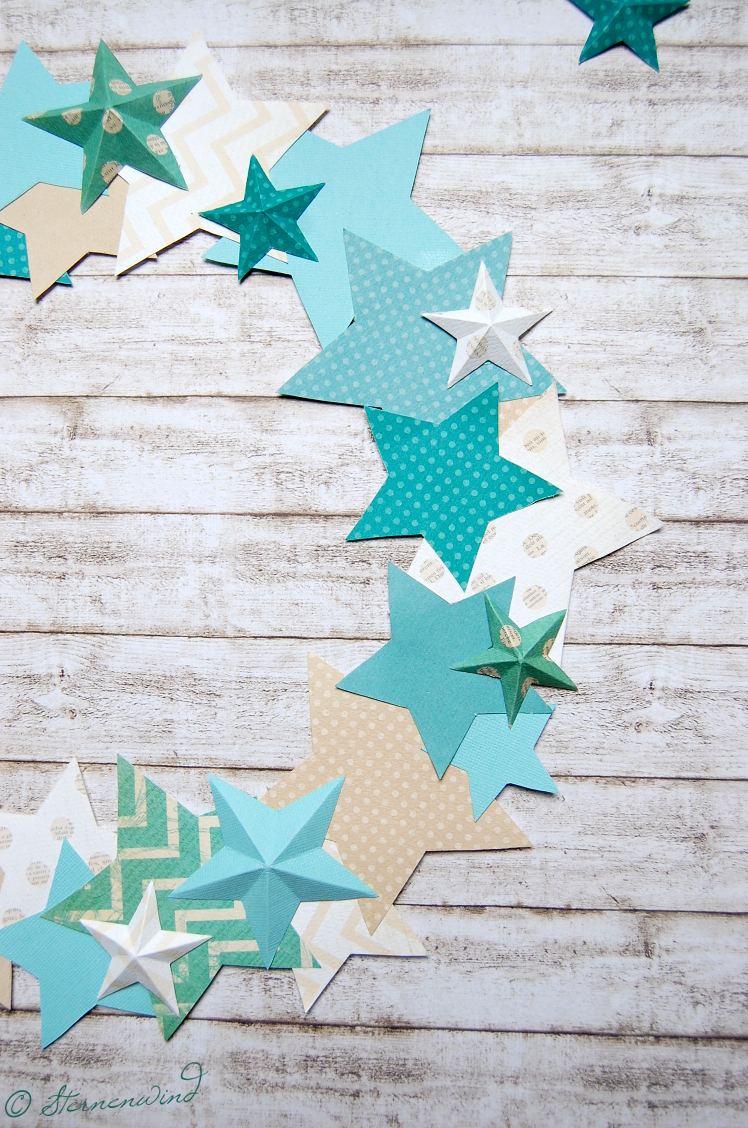 Habe hier auch ganz viele Sterne ausgeschnitten. Sie sollten eigentlich eine Girlande werden… Vielleicht werden sie nun ein Kranz :-).