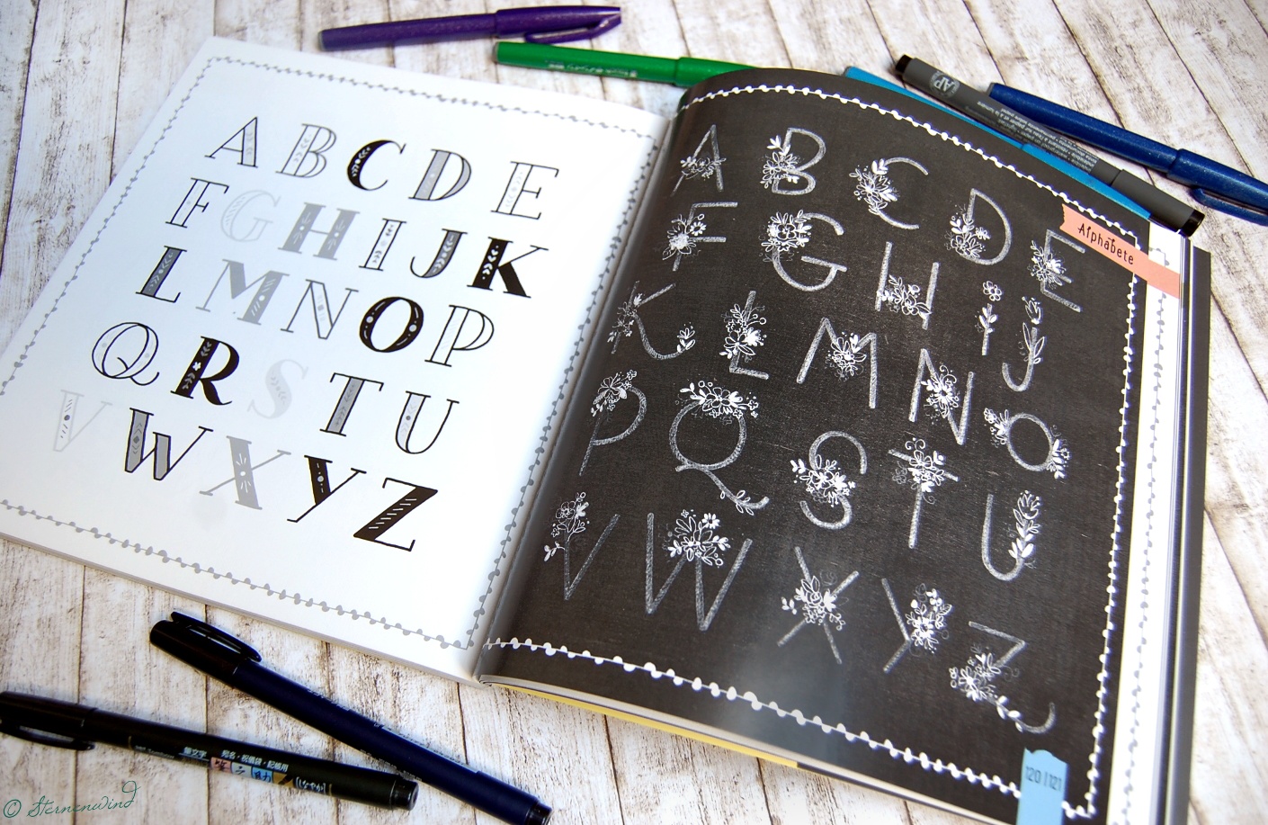 Ein weiteres Buch, in das ich auf der Messe mal reingeblättert hatte, ist „100 kalligraphische Alphabete“ vom Topp Verlag. Der Schwerpunkt liegt hier in Richtung Kalligrafie und hat mich daher eher weniger angesprochen für das, was ich gesucht habe. Aber ein Blick hineinzuwerfen schadet bestimmt nicht. Kostenfaktor: 14,99 €.