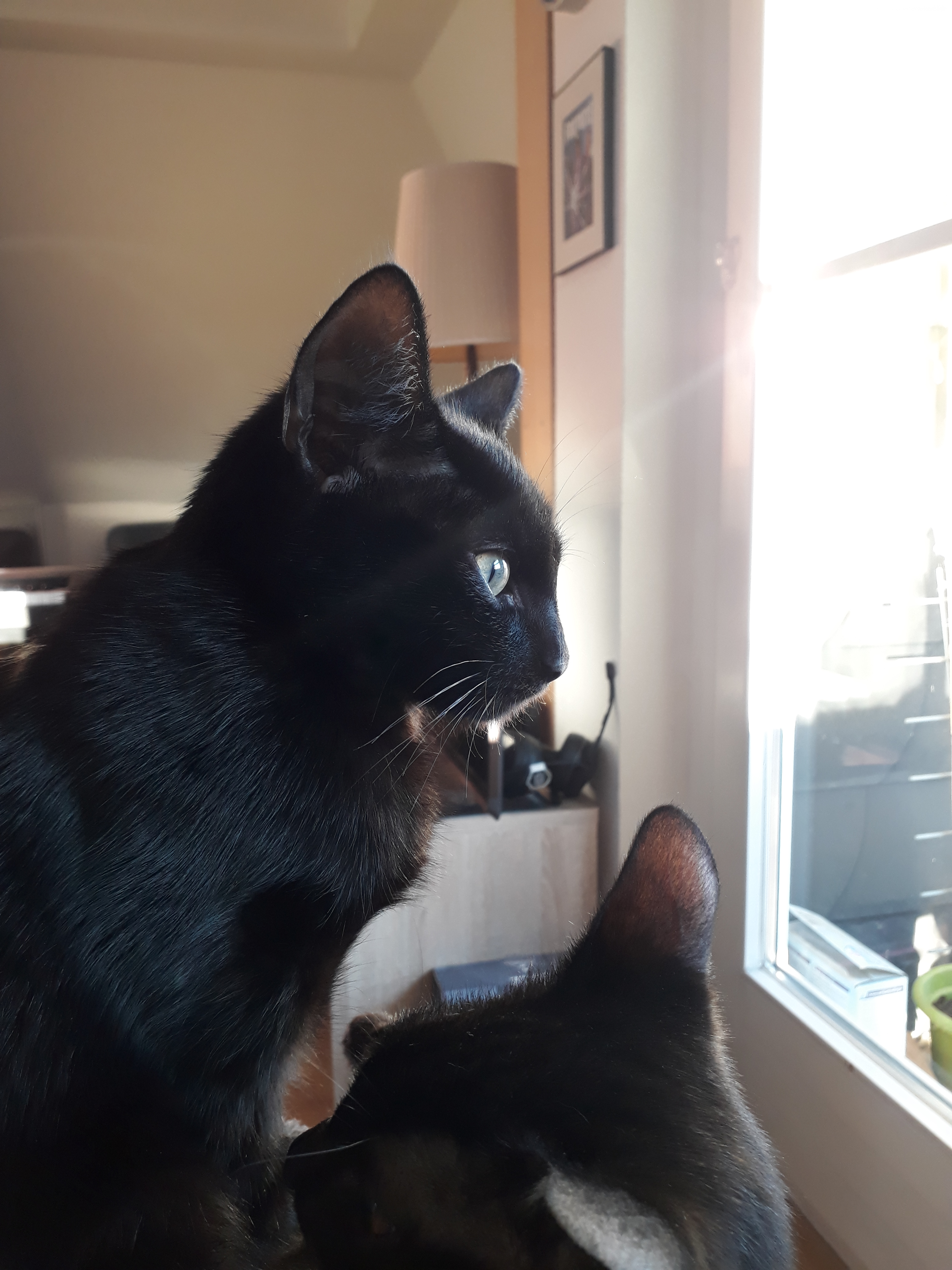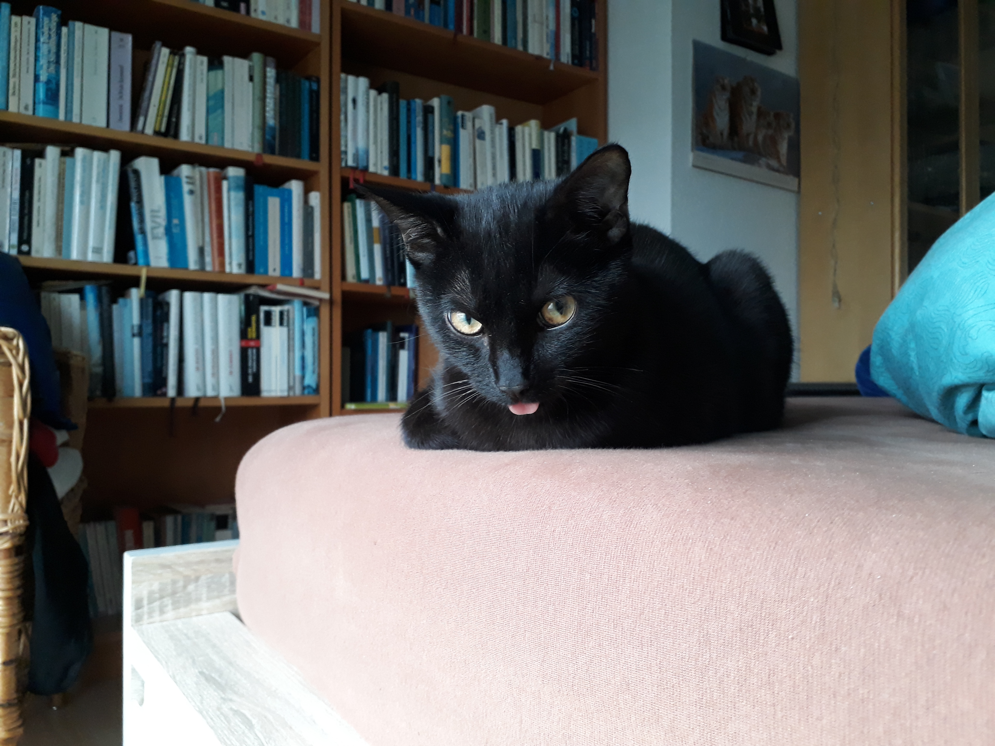 Seit Ende August haben wir neue Mitbewohner in Form von zwei schwarzen Katern, die uns seitdem schnurrend und miauend begleiten und uns zum lachen, dahin schmelzen und schimpfen bringen. Am Anfang haben wir uns gefragt, wie wir zwei schwarze Kater auseinander halten können, aber das geht schneller als gedacht – von ihrer Wesensart sind die beiden total verschieden und auch beim Aussehen geben uns unterschiedliche Augenfarben und die ein oder anderen weißen Härchen Hinweise, wer denn nun wer ist.