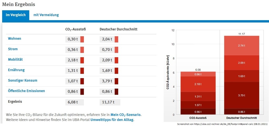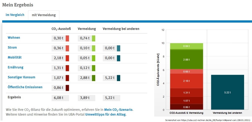 Zeit also, meine Tätigkeiten wieder genau auszurechnen und mit der CO2-Bilanz 2020 zu schauen, wo ich mich verbessert habe.