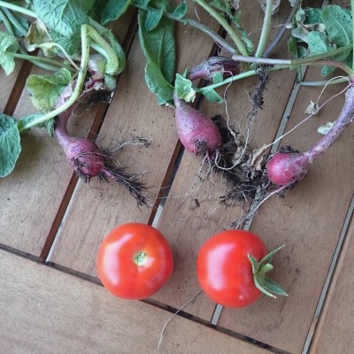 Tomaten und Radieschen Ernte