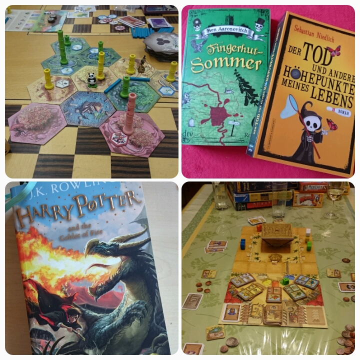 Gefreut: über das Buch „Der Tod und andere Höhepunkte meines Lebens“, ich bin da spontan drüber gestolpert in der Buchhandlung, habe es mitgenommen und in einem Tag durchgelesen, ich fand es einfach super, dass endlich „Fingerhut-Sommer“ von Ben Aaronovitch draußen ist, dass ich mal wieder einige Freundinnen gesehen hab, über neue Spiele